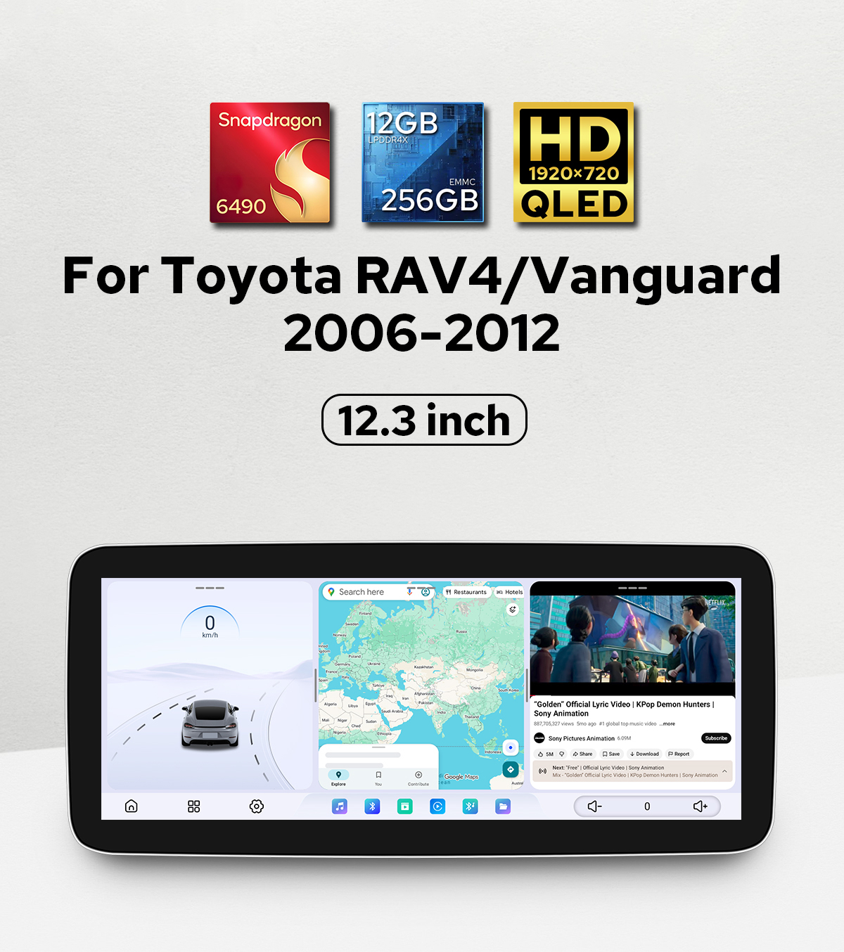 12.3 Inch Aftermarket GPS Stereo Units For Toyota RAV4/Vanguard 2006-2012