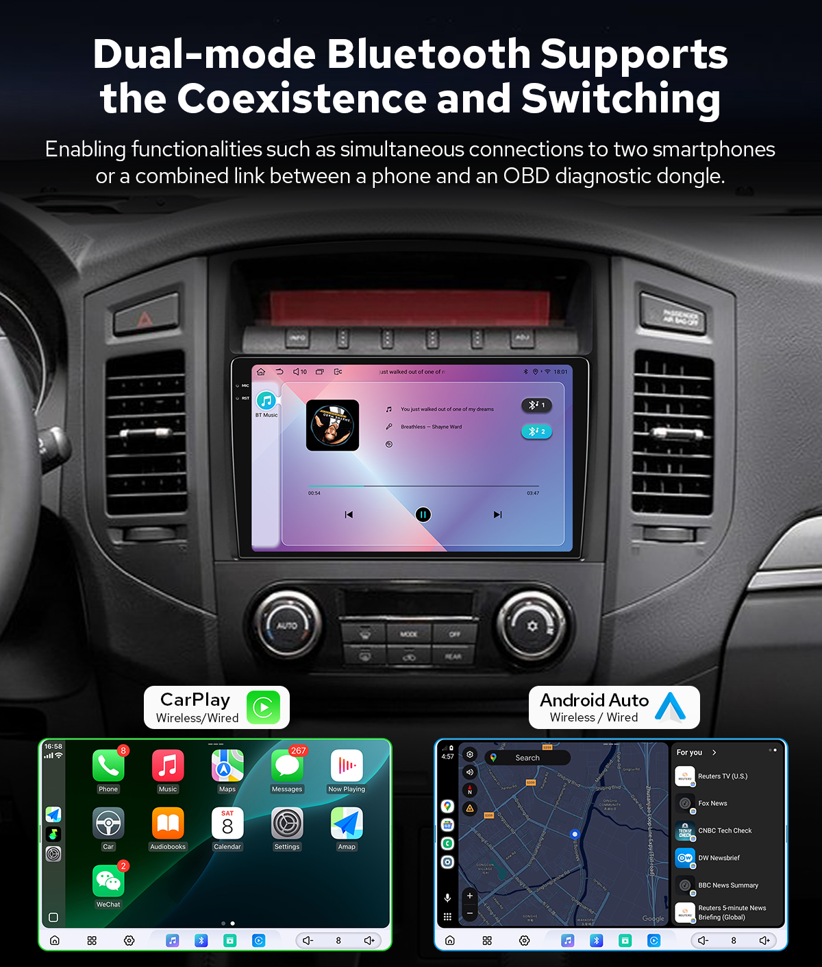 Android auto Support wired/wireless Android Auto