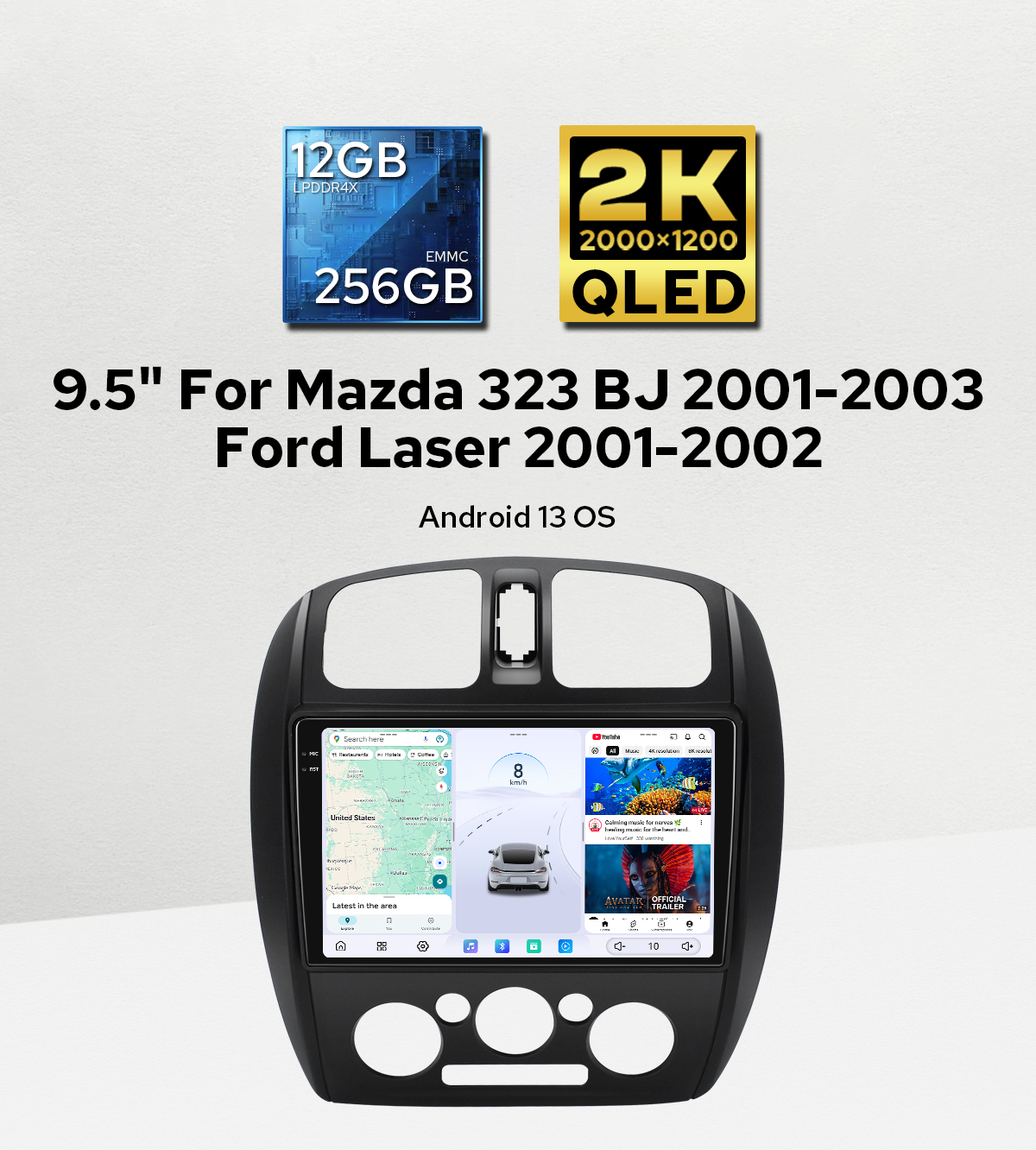 2026 Latest 9.5" Head Unit Android Auto Car Stereo for Mazda 323 BJ 2001-2003/Ford Laser 2001-2002