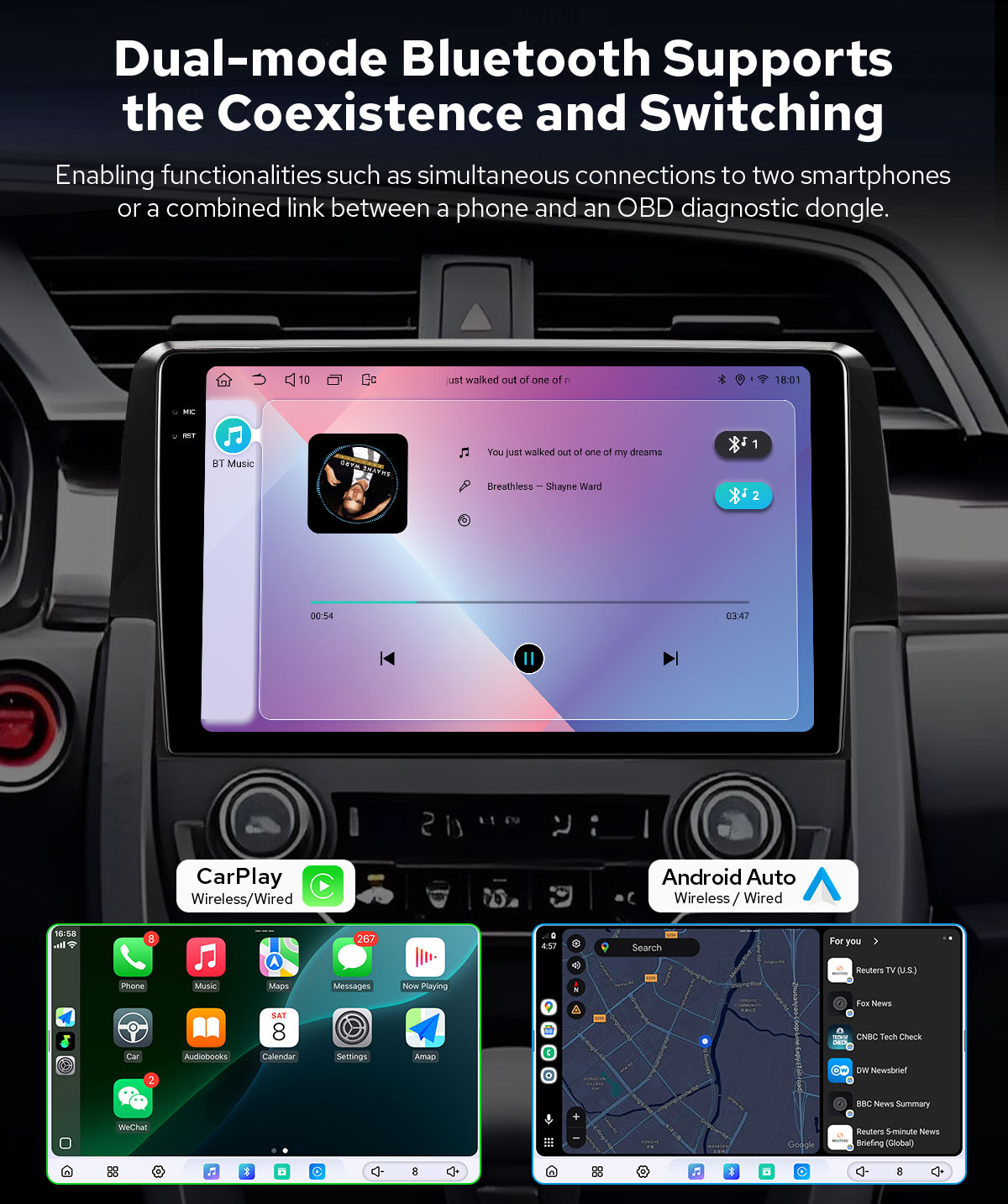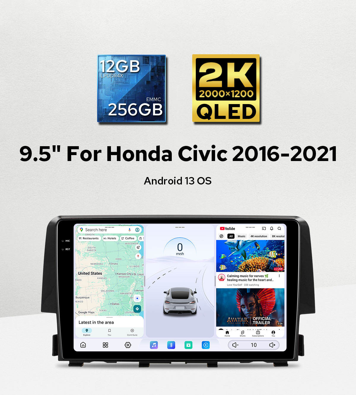 2K 9.5 Inch Wireless Android Auto Radio Upgrade For Honda Civic 2016-2021
