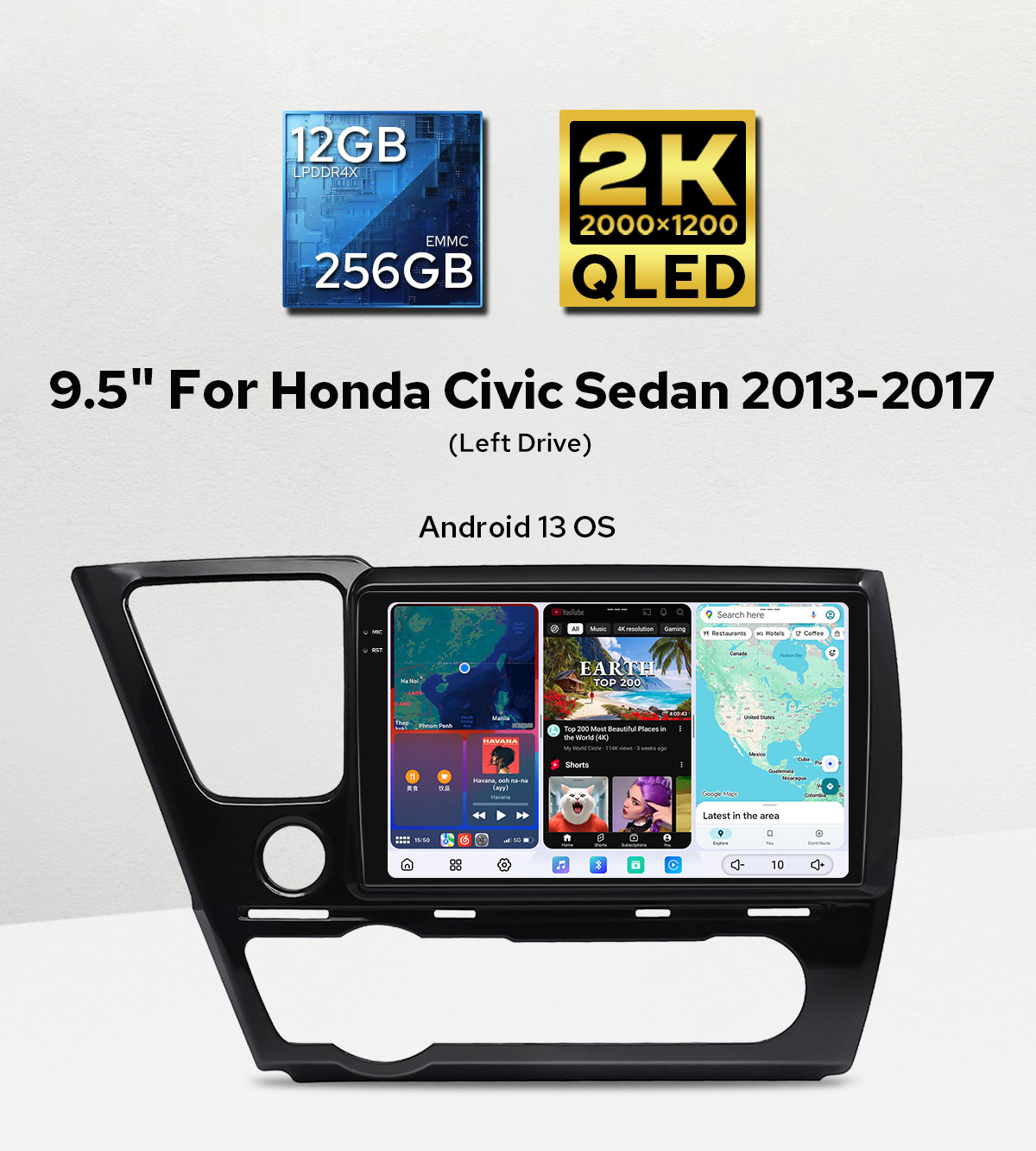 5G Wifi Plug & Play 9.5 Inch DAB+ Radio Upgrade For Honda Civic 2013-2017 |Left Drive