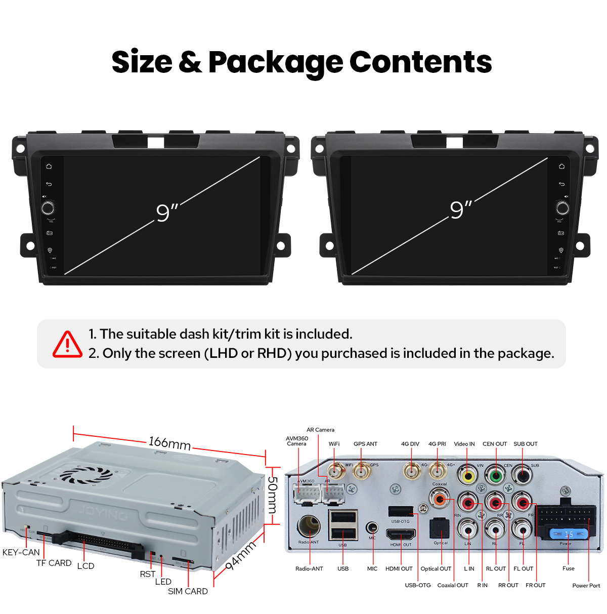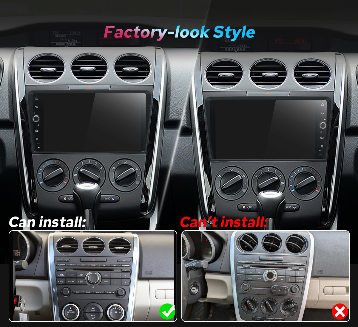 Note: The installation process for this navigation system in your Mazda CX-7 2007-2012 is straightforward and requires no cutting of wires. The plug&play harness and fascia will be included with the Autoradio—no need to purchase them separately. If you are not sure whether this head unit can fit your car, pls send your car model, years and dashboard picture to europe@joyingauto.com, we will help you confirm it.