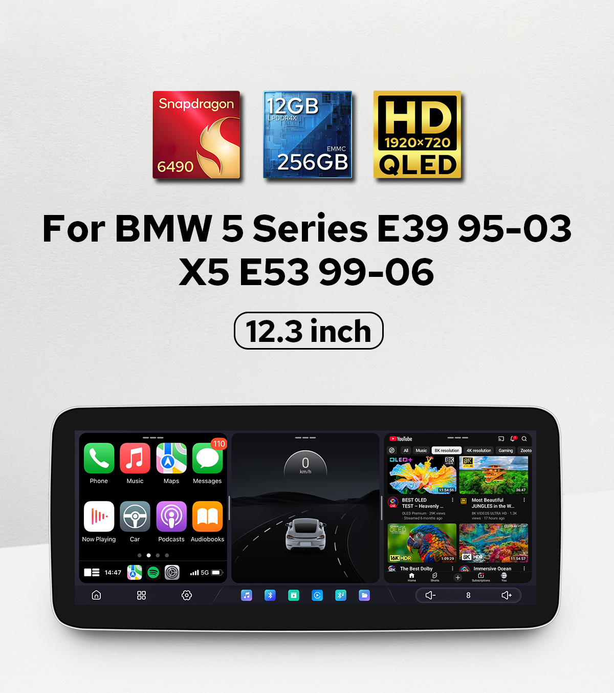Plug&Play BMW 5 Series E3/X5 E53 Head Unit 12.3" DIY Screen 12GBRAM+256GBROM Android Car Stereo