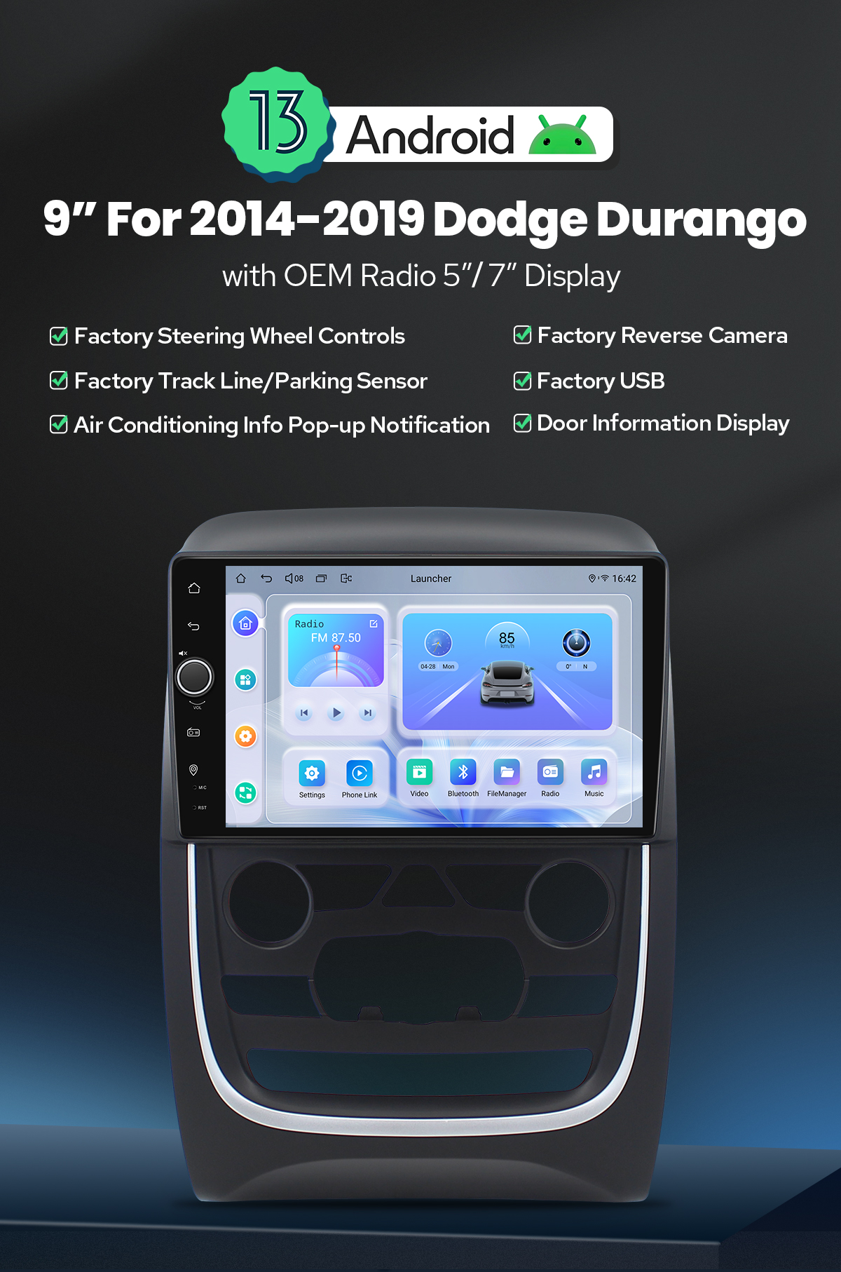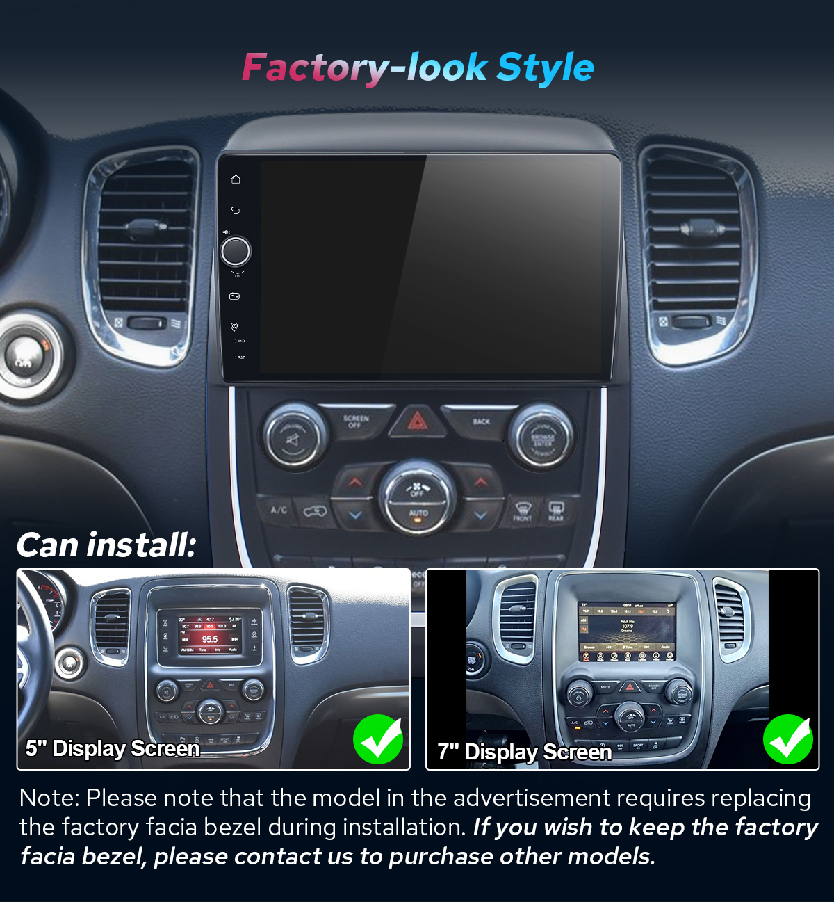 Note:100% Compatible with retrofit carplay Dodge Durango 2014-2019 - True Plug & Play Harness/Retains Original Steering Wheel Controls/Works with OEM Backup Camera/No Cutting Wires Needed. More details please check below. If you are not sure whether this head unit can fit your car, pls send your car model, years and dashboard picture to europe@joyingauto.com, we will help you confirm it.