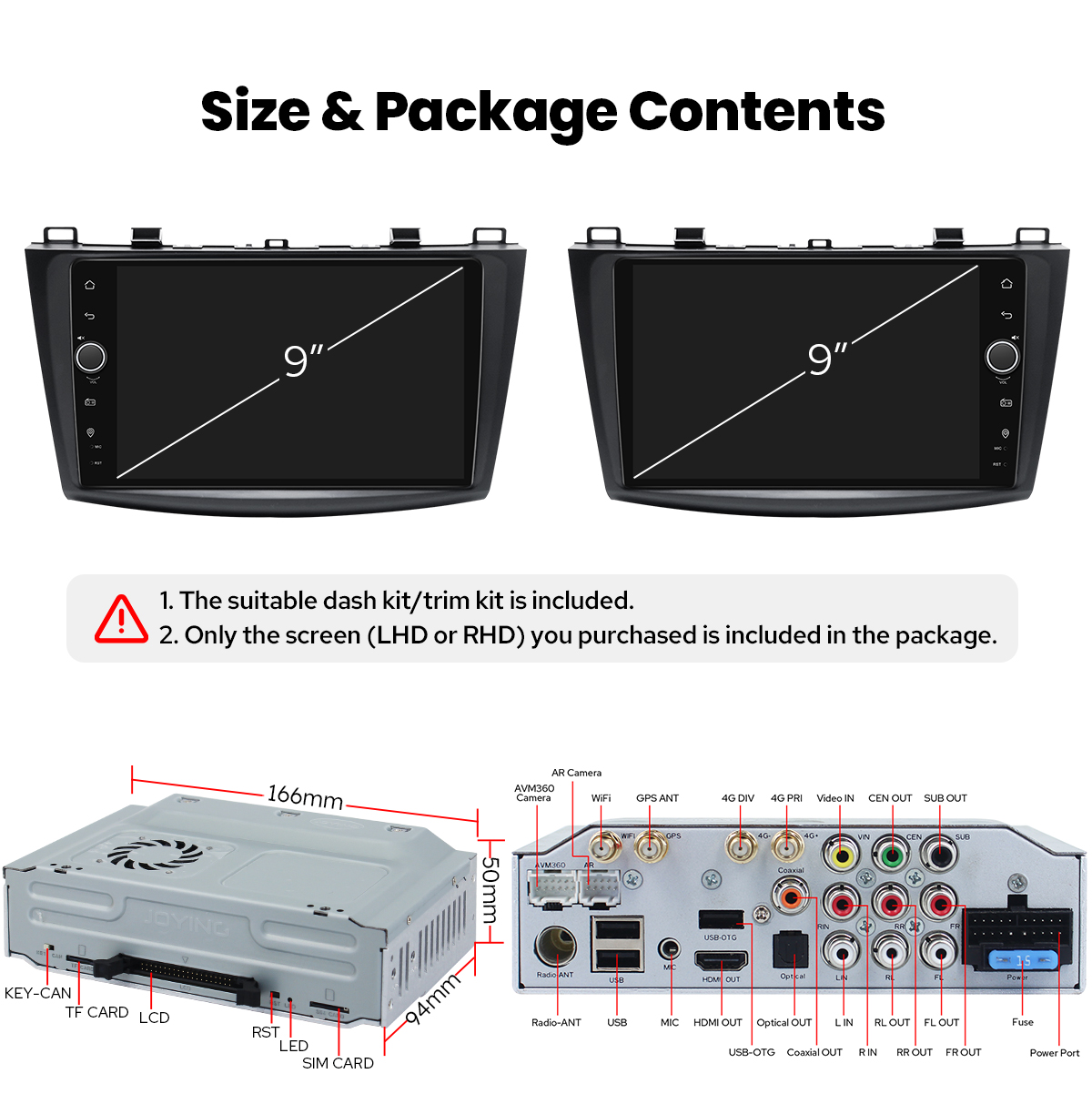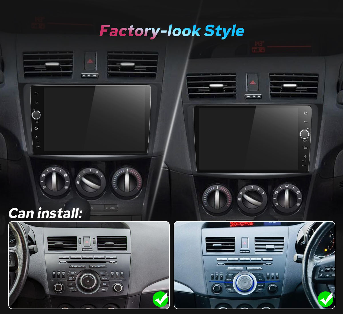 Note: The installation process for this navigation system in your Mazda 3 2009-2013 is straightforward and requires no cutting of wires. The plug&play harness and fascia will be included with the Autoradio—no need to purchase them separately.If you are not sure whether this head unit can fit your car, pls send your car model, years and dashboard picture to europe@joyingauto.com, we will help you confirm it.