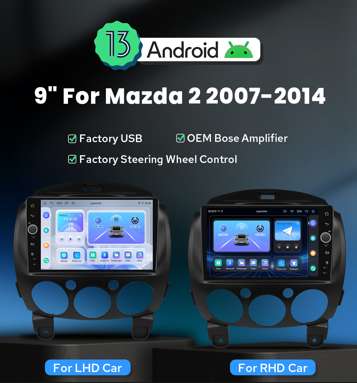 9 Inch Android 13 Autoradio DAB+ For 2007-2014 Mazda 2| Wireless Android Auto