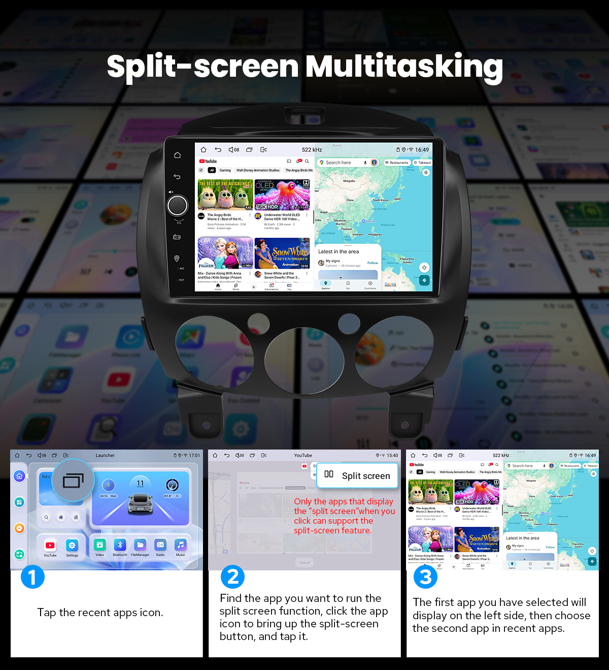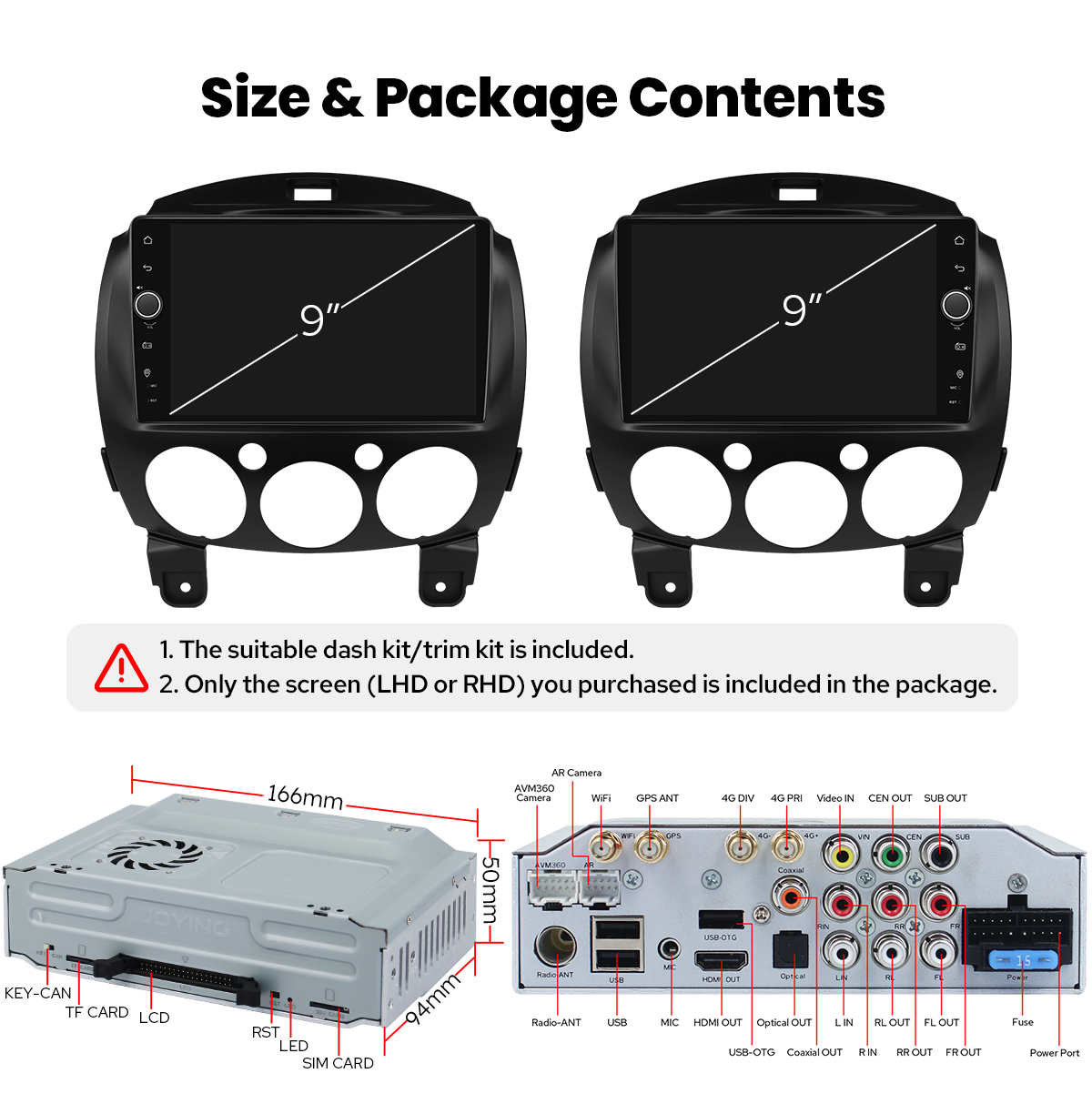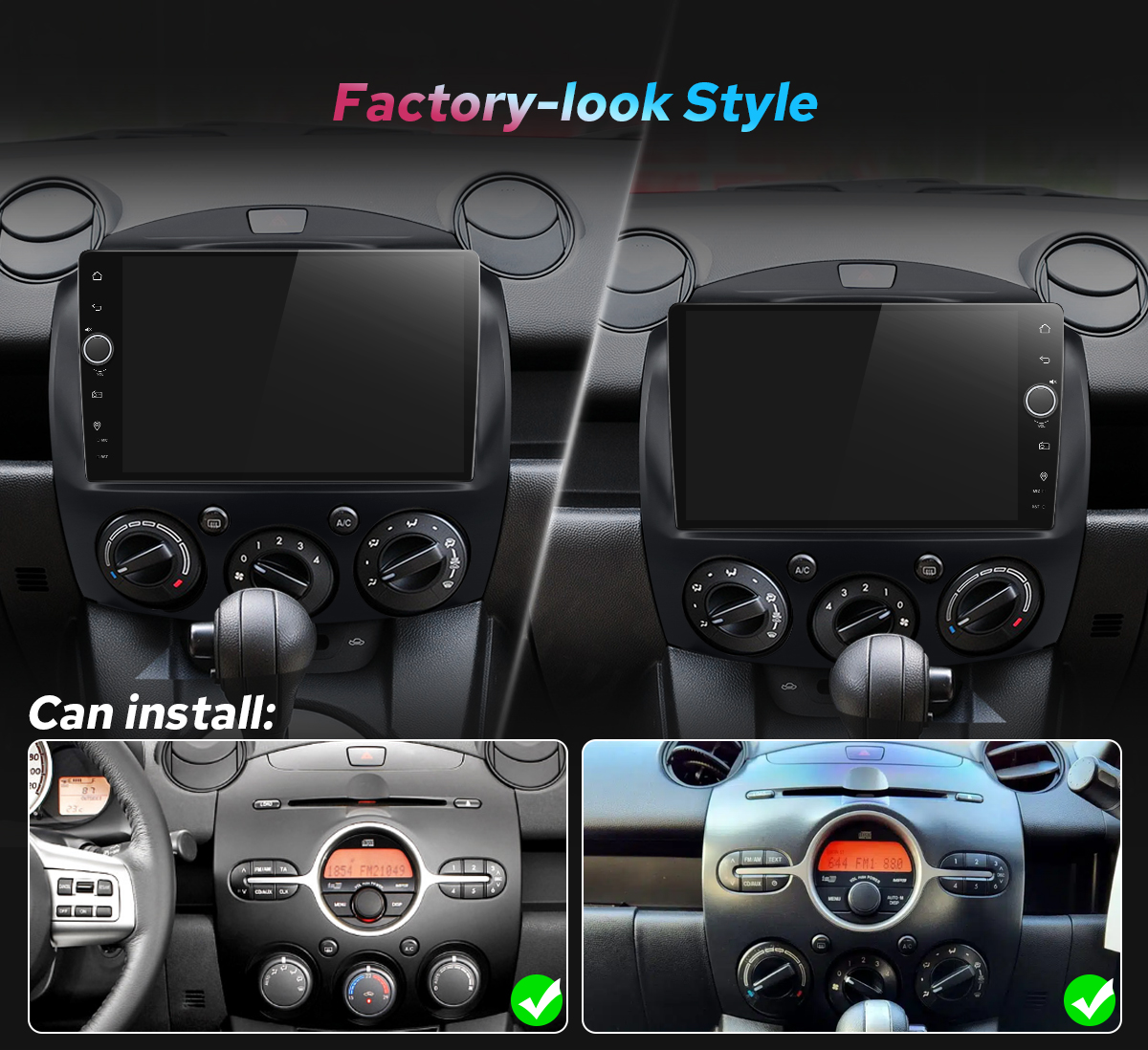 Note: The installation process for this navigation system in your or Mazda 2 2007-2014 is straightforward and requires no cutting of wires. The plug&play harness and fascia will be included with the Autoradio—no need to purchase them separately.If you are not sure whether this head unit can fit your car, pls send your car model, years and dashboard picture to europe@joyingauto.com, we will help you confirm it.
