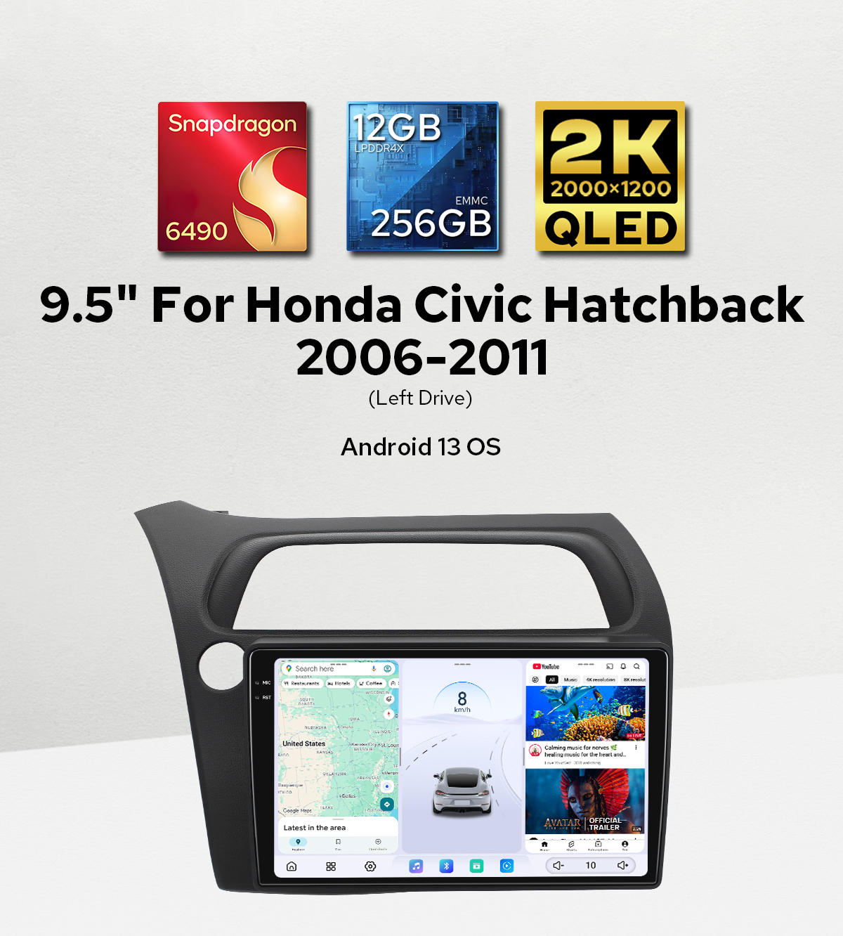 Left Drive | Honda Civic Hatchback 2006-2011 Car Radio Replacement 9.5" Android 13 Head Unit