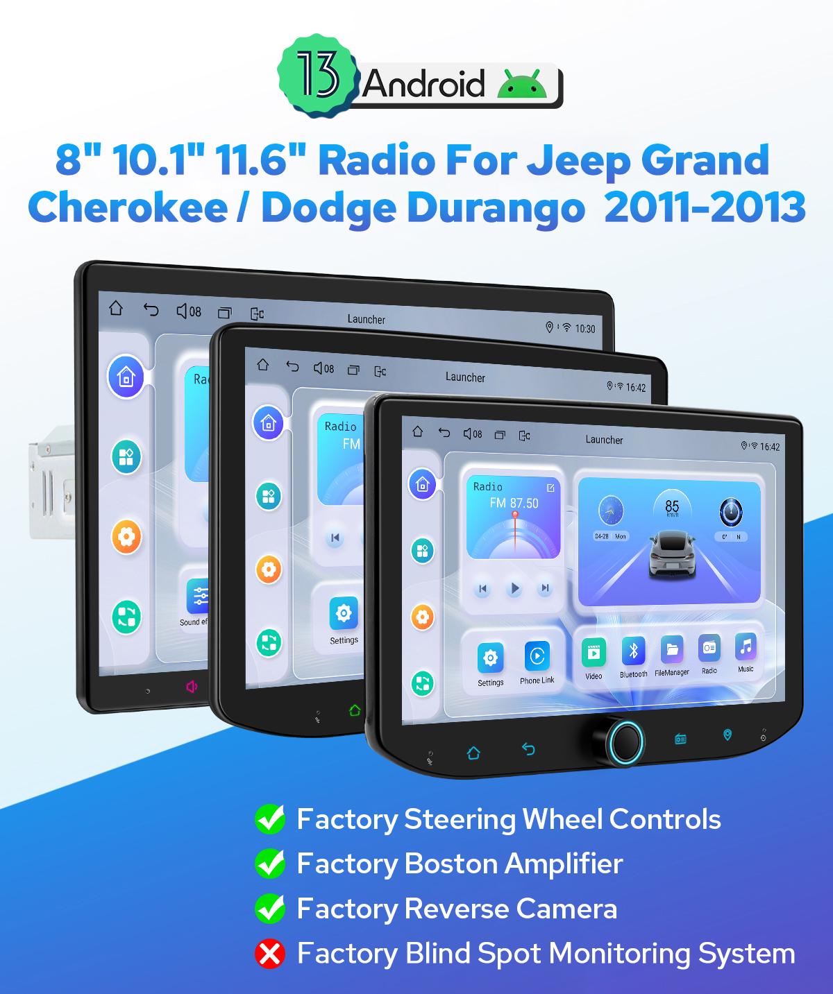 Jeep Grand Cherokee/Dodge Durango 2011-2013 Car Media Player Android 13 HD Radio SWC/Boston Amp