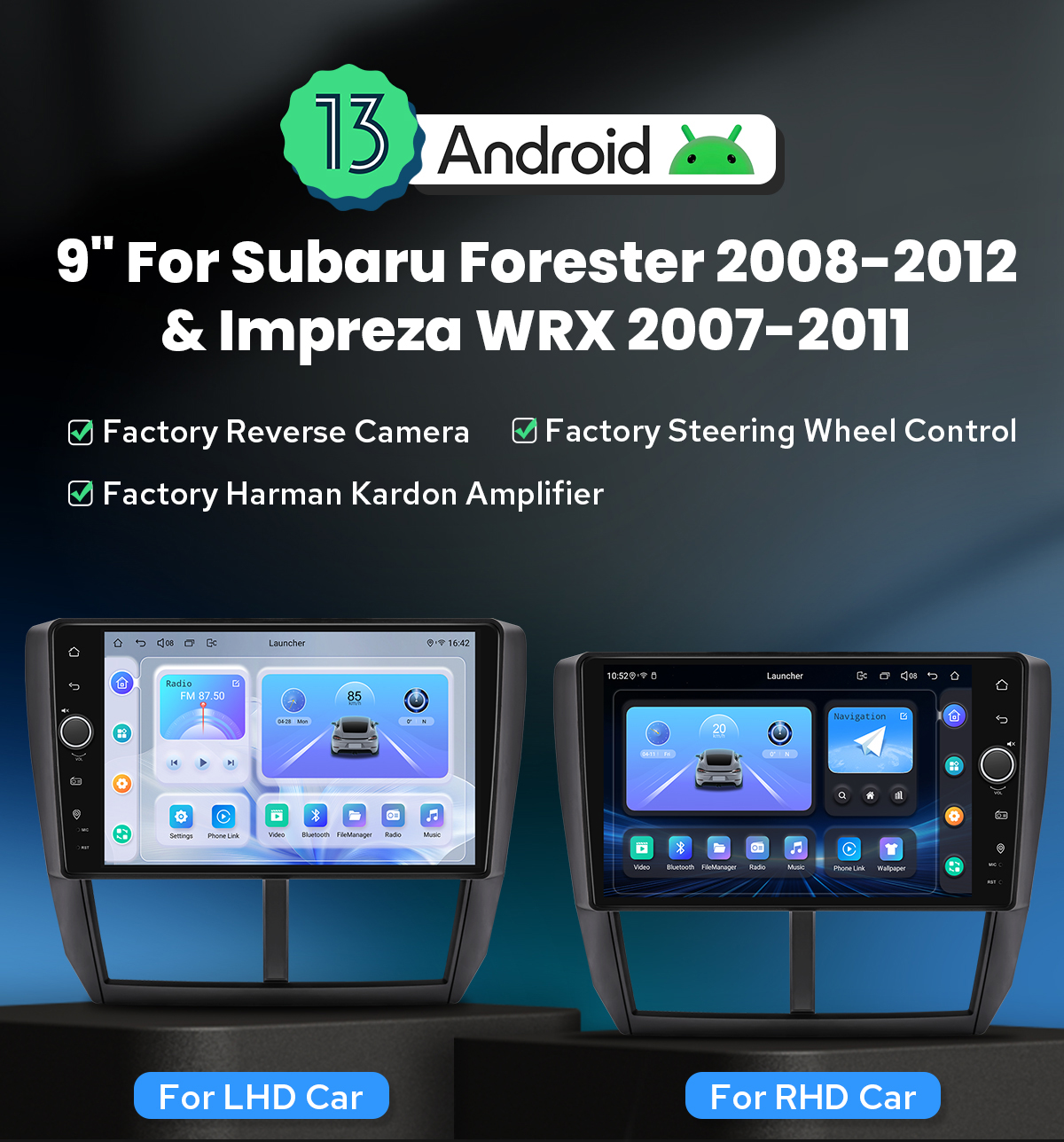 9" Android Auto Head Unit for Subaru Forester 2008-2012/ Impreza WRX 2007-2011| Retains Harmon Kardon | Plug & Play