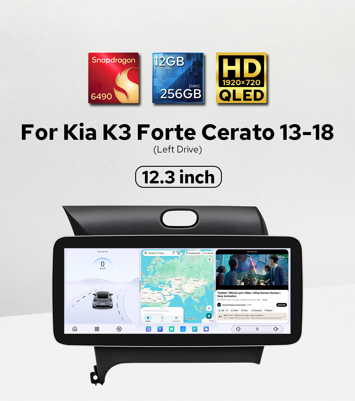 Left Drive - 12.3" Aftermarket Car Stereo for Kia K3 Forte Cerato support OEM Parking Sensor