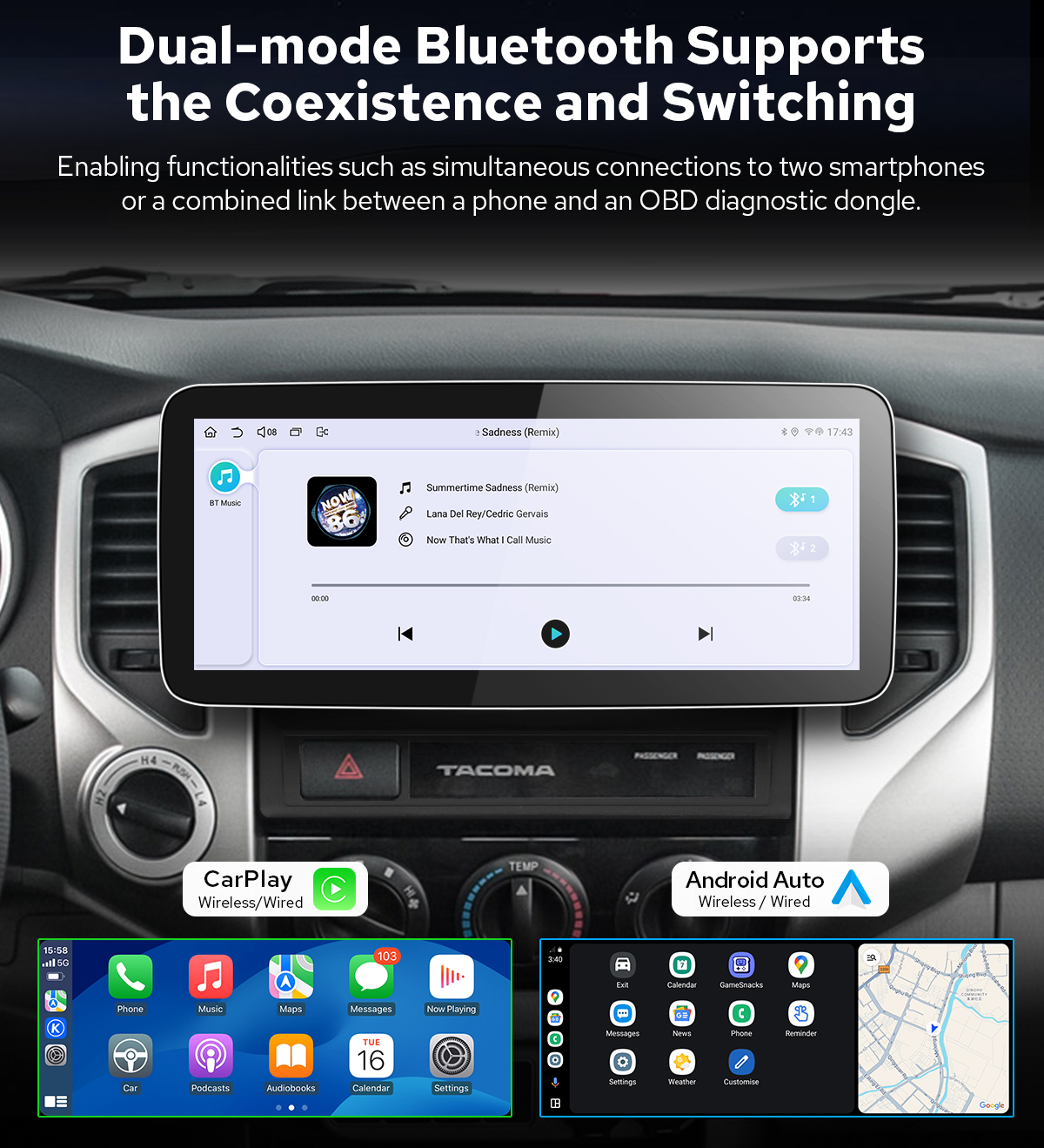Note:100% Compatible with Toyota Tacoma 2005-2015 DAB+ Autoradio Android Auto Retains Original Car Function: