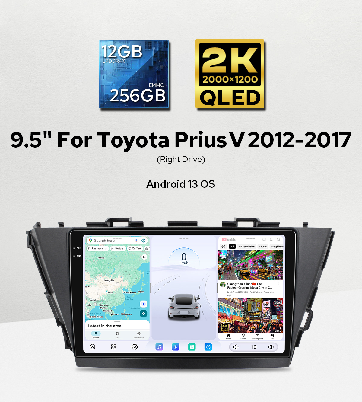 New-Generation 9.5" Wireless Apple CarPlay&Android Auto For Toyota Prius V 2012-2017