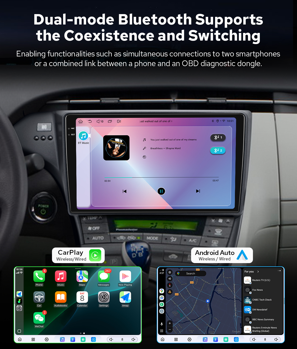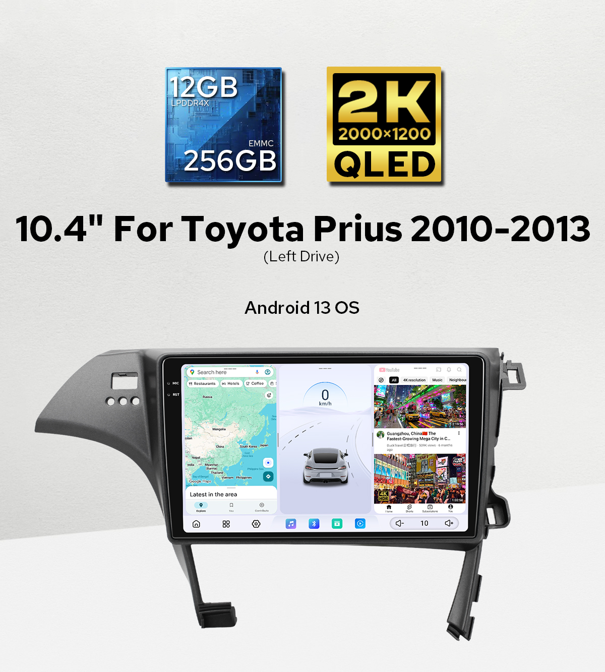 Next-Generation 10.4 Inch Wireless CarPlay&Android Auto For Toyota Prius 2010-2013 With Left Drive