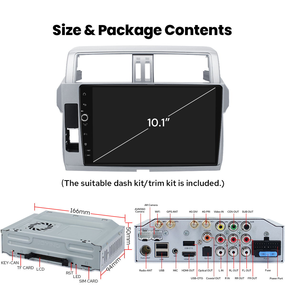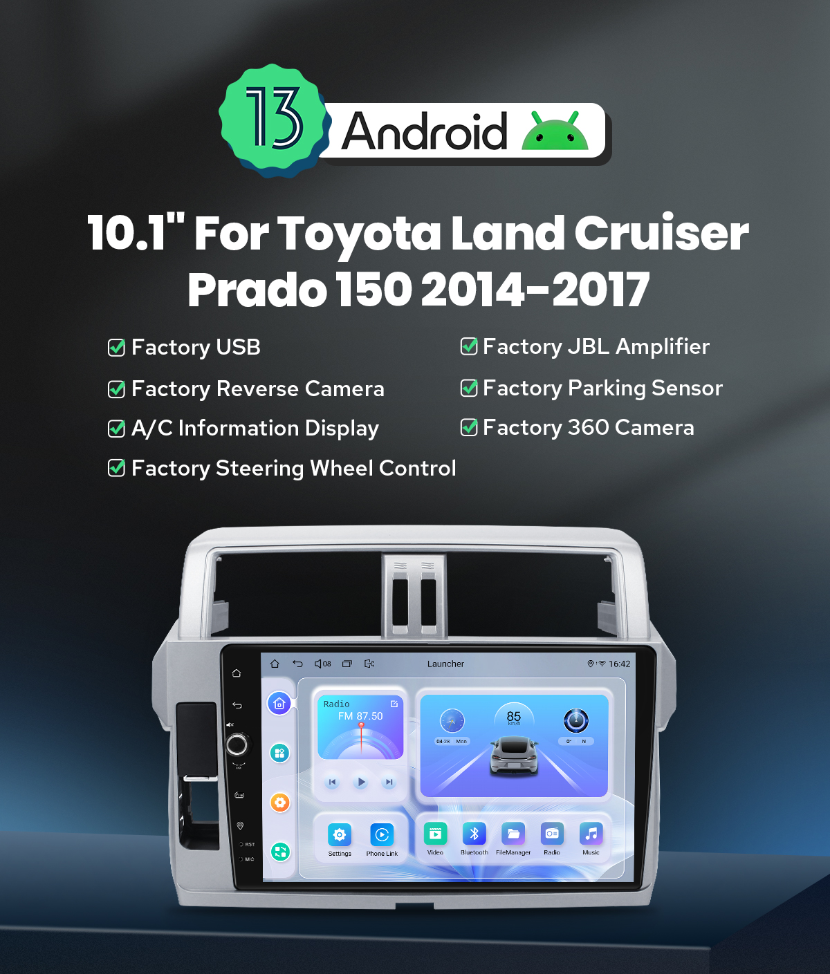 Plug and Play 10.1" Car Stereo for Toyota Land Cruiser Prado 150 2014-2017 Android Bluetooth Radio