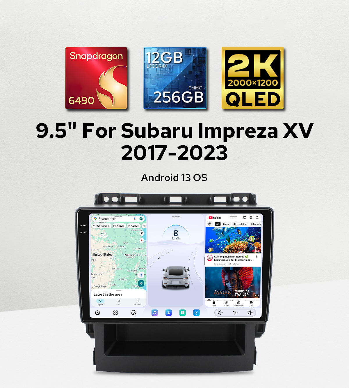 Plug&Play Aftermarket Car Stereo Upgrade for Subaru Impreza XV 2017-2023 with 9.5" 2K Qled Screen