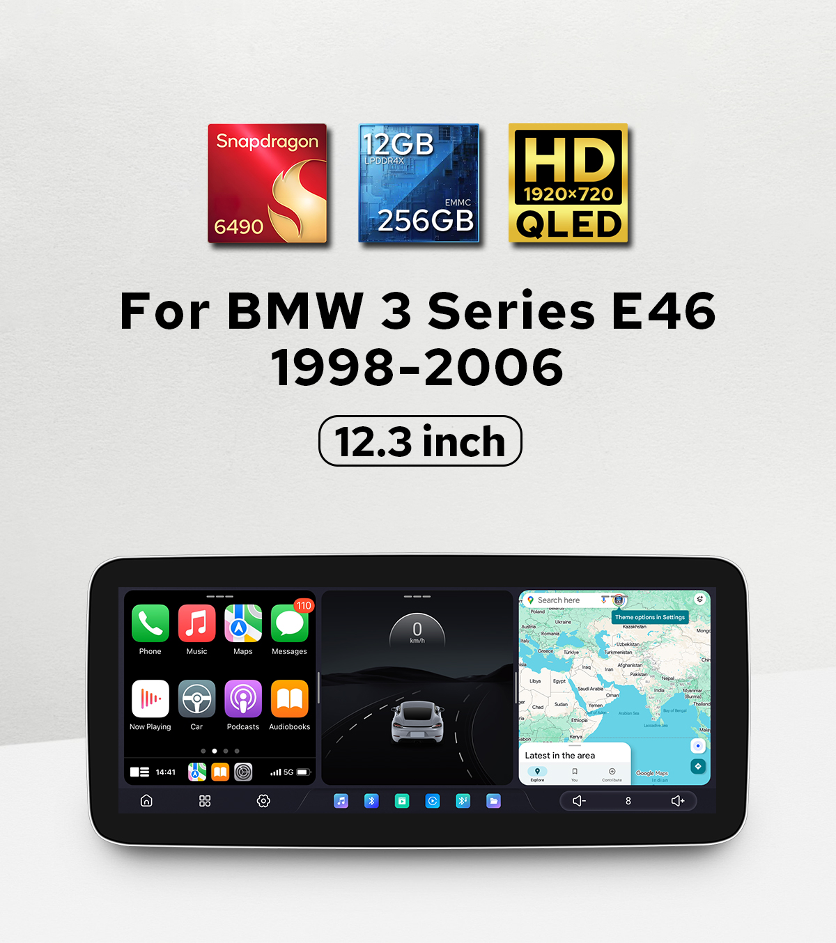 Qualcomm Snapdragon 12.3" QLED Screen Car Stereo Upgrade for BMW 3 Series E46 1998-2006