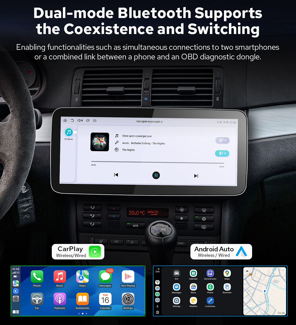 Note:100% Compatible with BMW 3 Series E46 1998-2006 Autoradio Android Auto Retains Original Car Function: