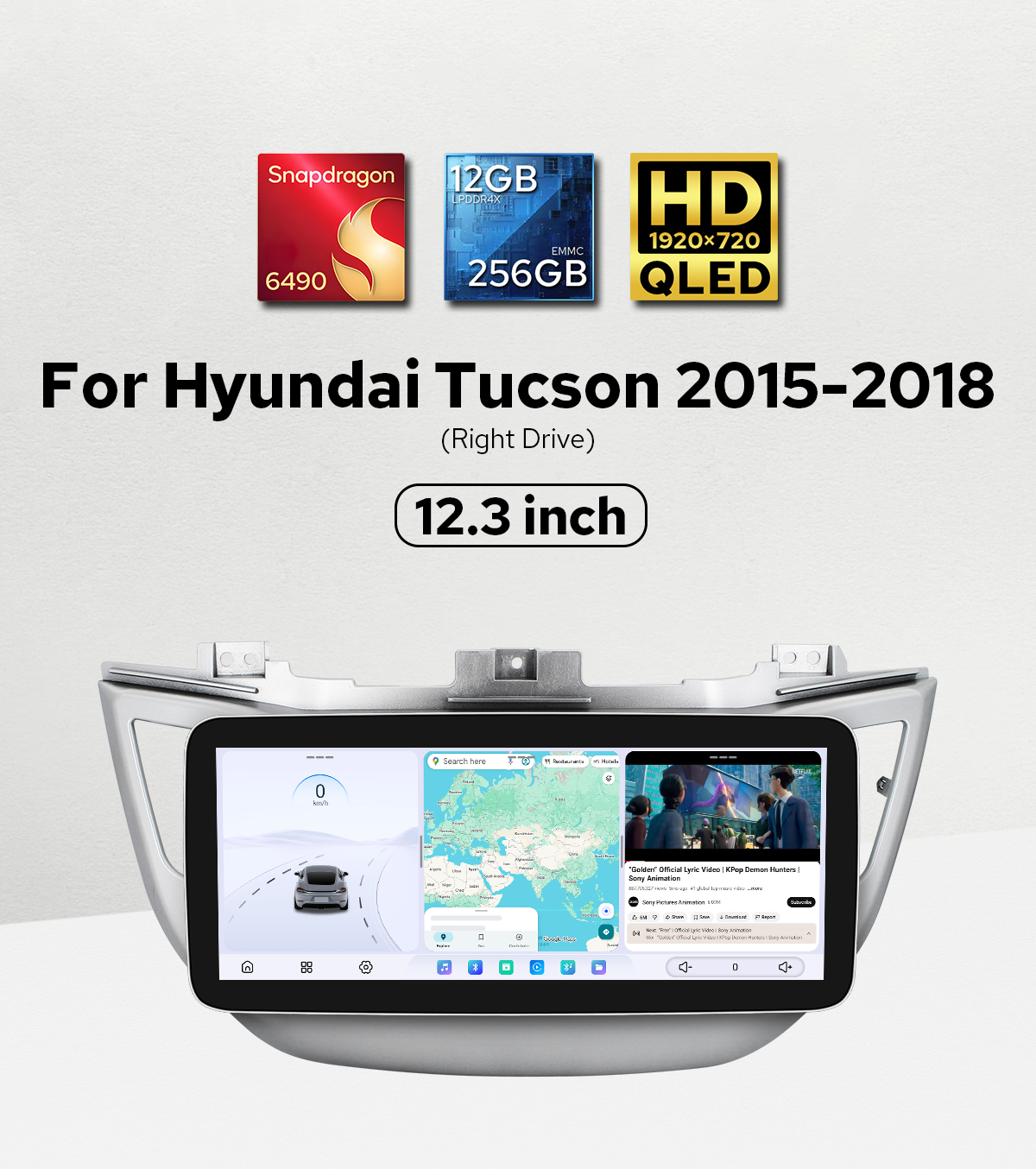 Top Android 13 Head Unit Replacement with 12.3" Screen for Hyundai Tucson 2015-2018 - Right Drive