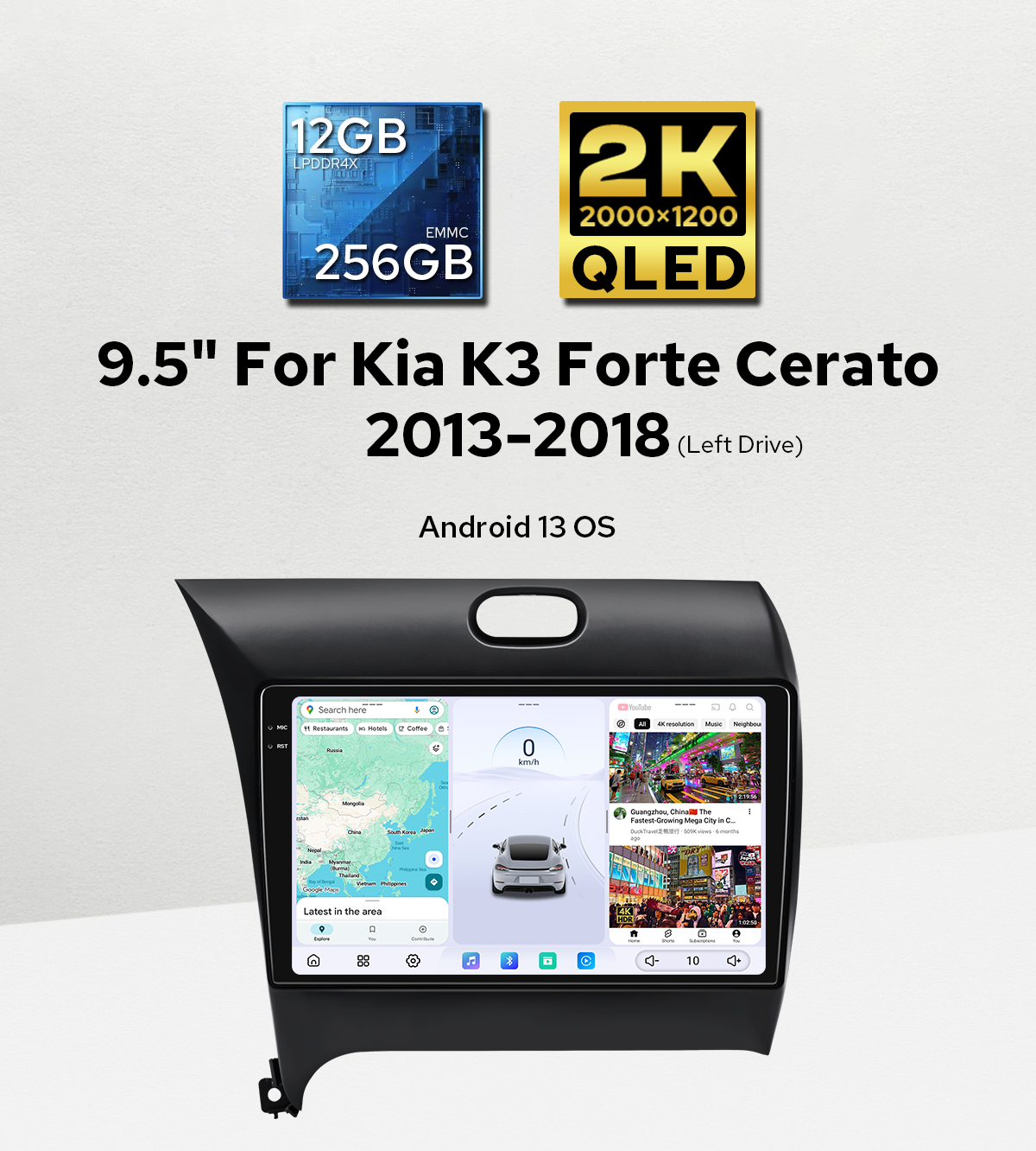 Topest Android Auto Car Stereo with 9.5" 2K QLED Screen for Kia Forte Cerato 2013-2018 Left Drive