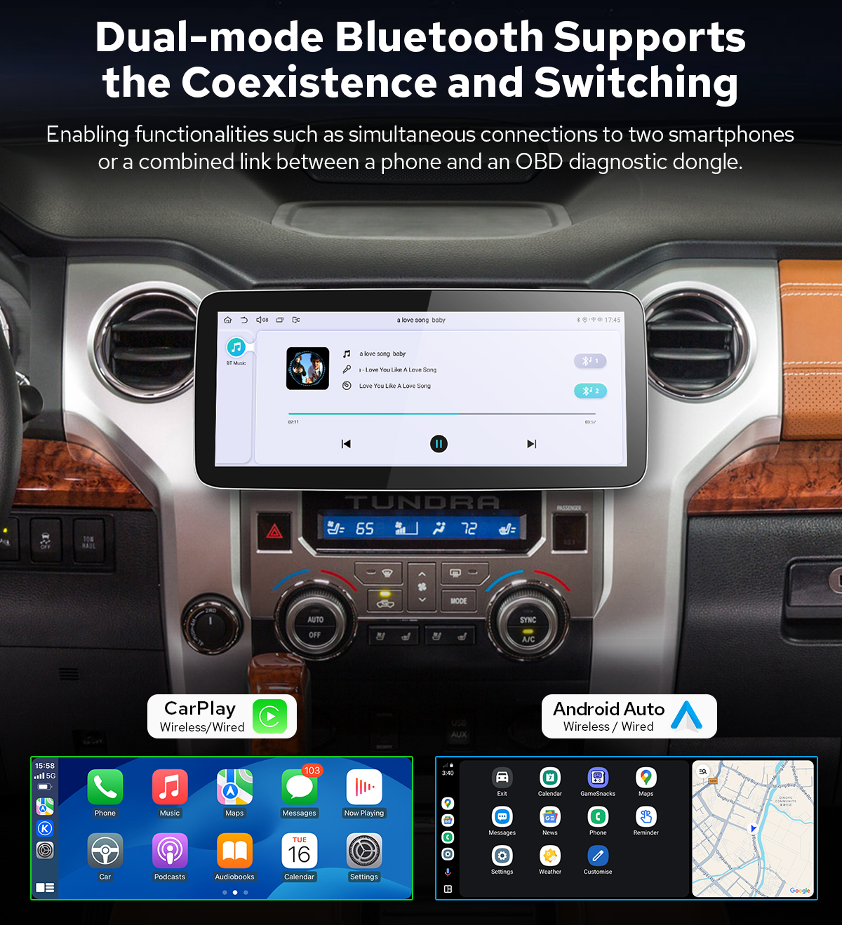 Toyota Tundra 2014-2021 Aftermarket Car Stereo Upgrade with 12.3" Android Autoradio