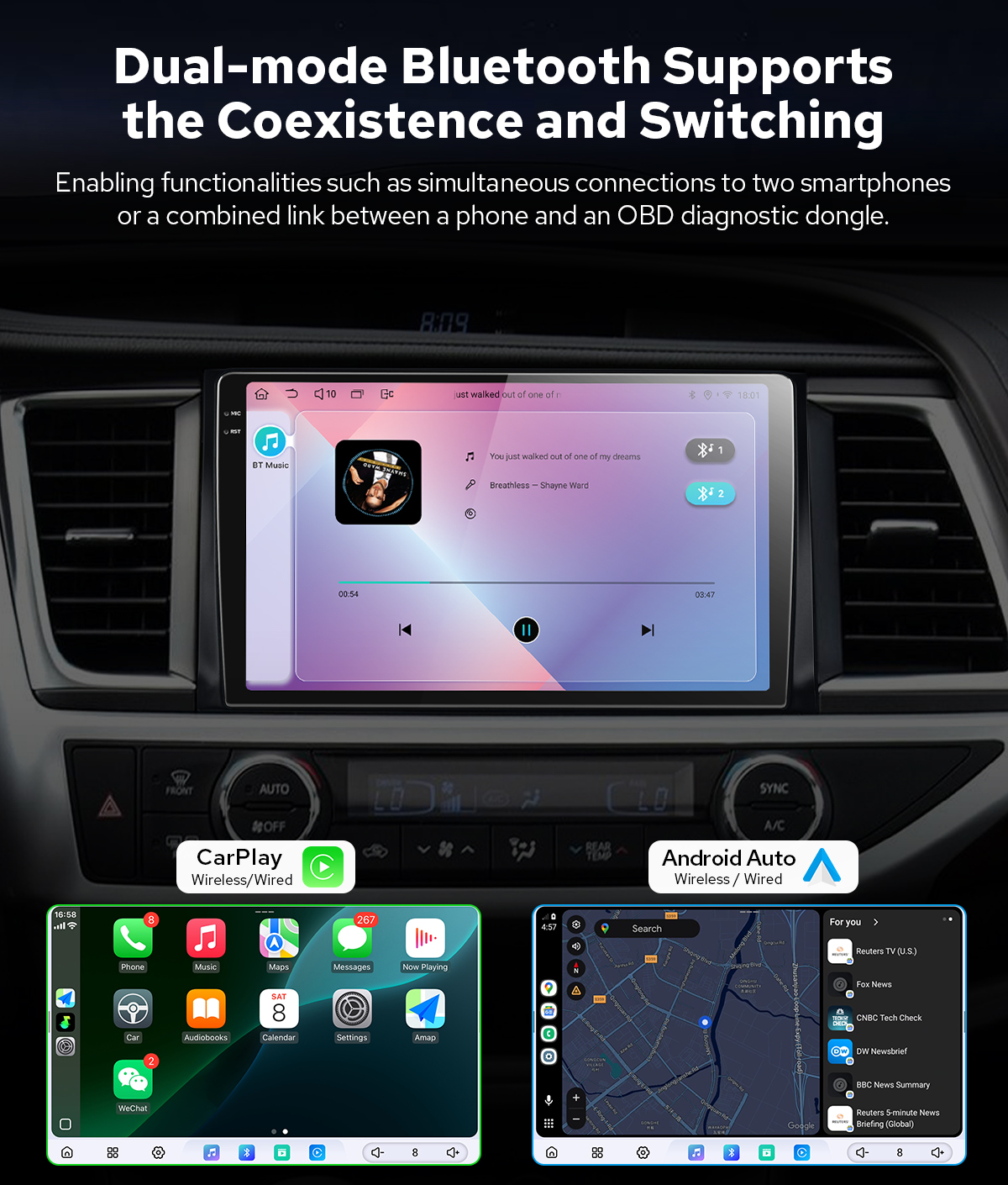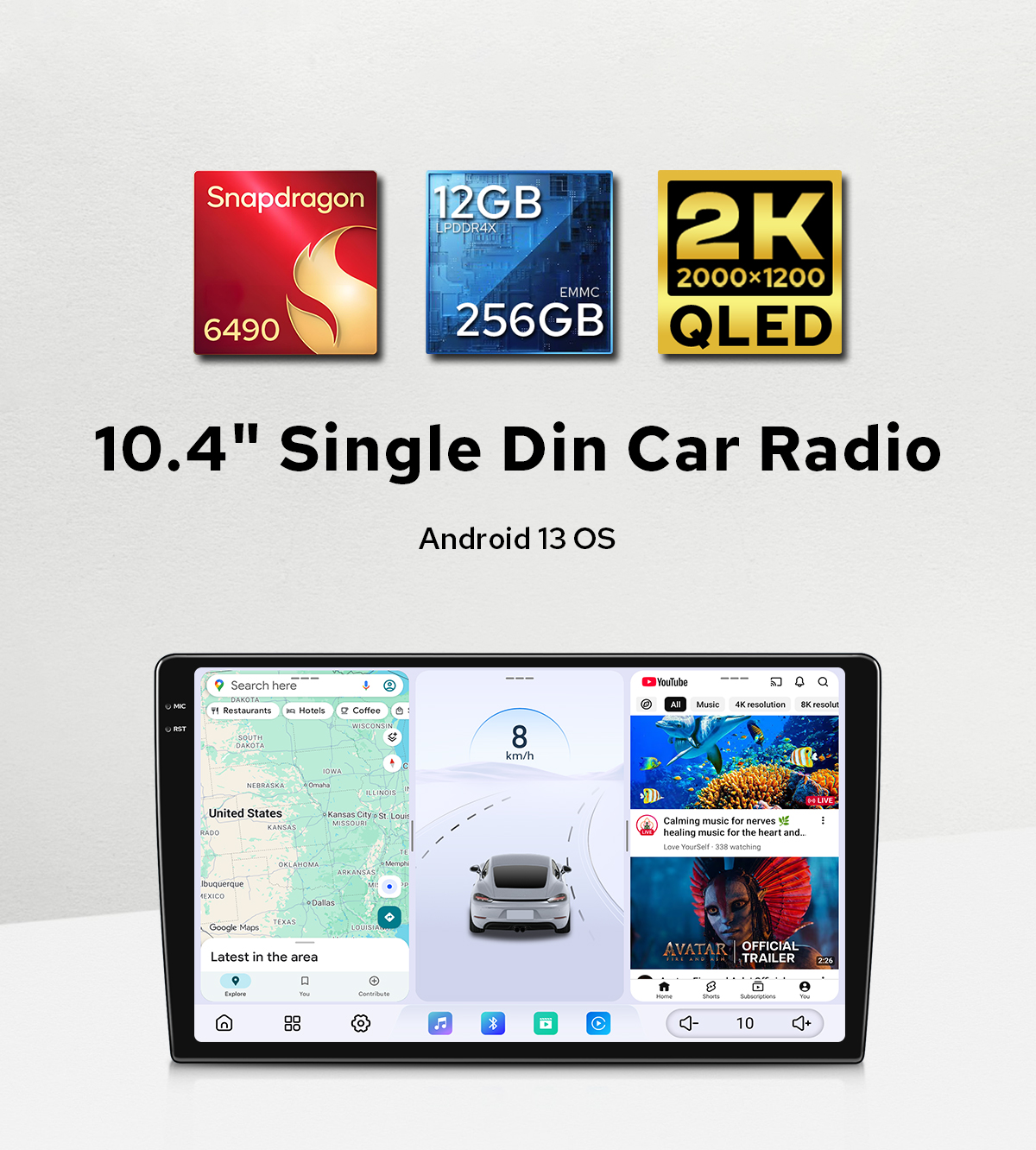 Upgraded 12GB+256GB Android Autoradio 10.4 Inch Single Din Car GPS Navigation System