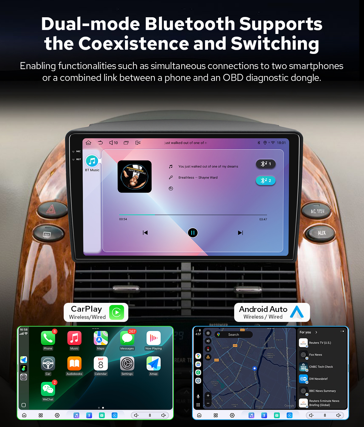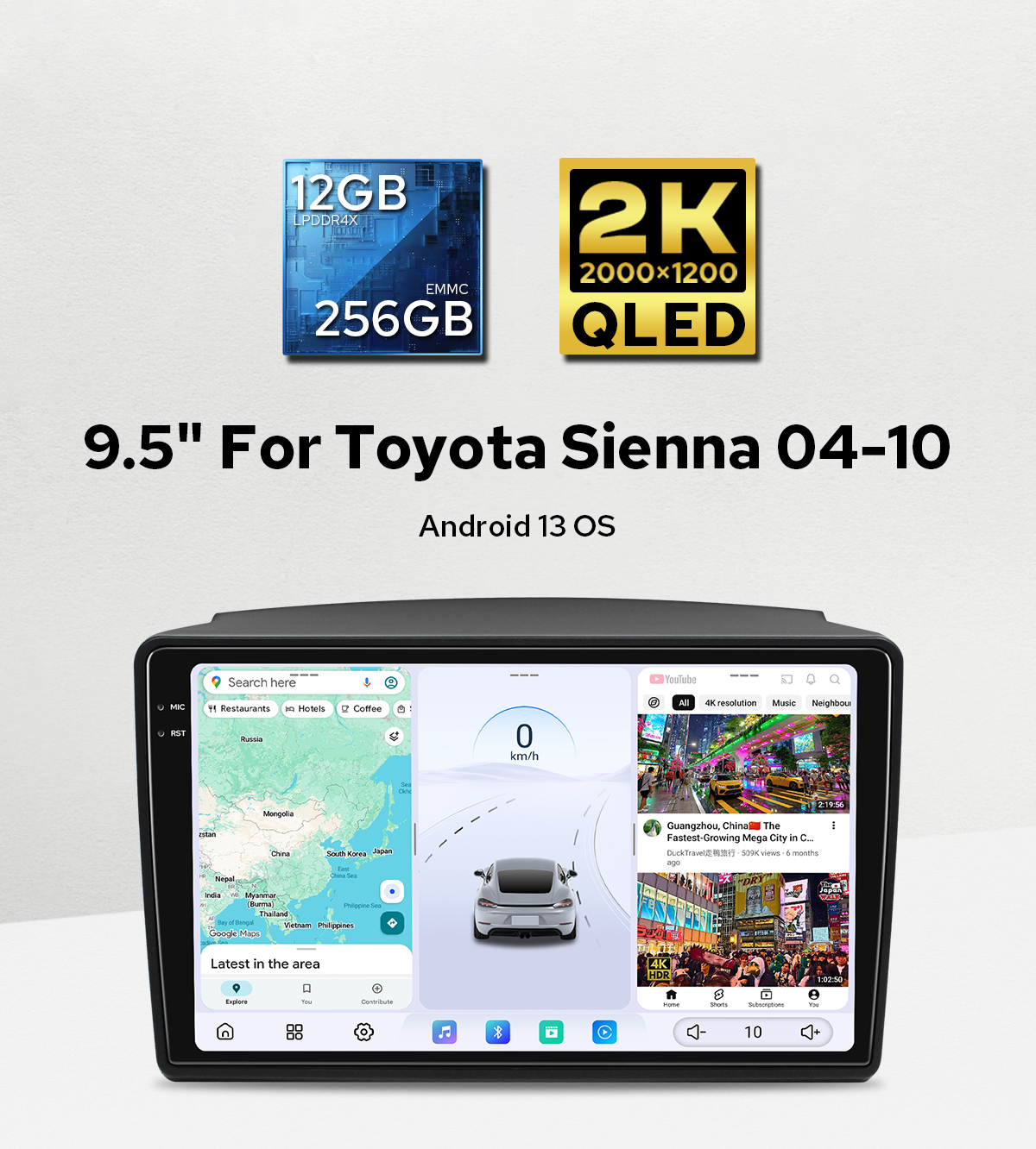 USB Type-C In 9.5" Autoradio Carplay Wireless Upgrade For Toyota Sienna 2004-2010